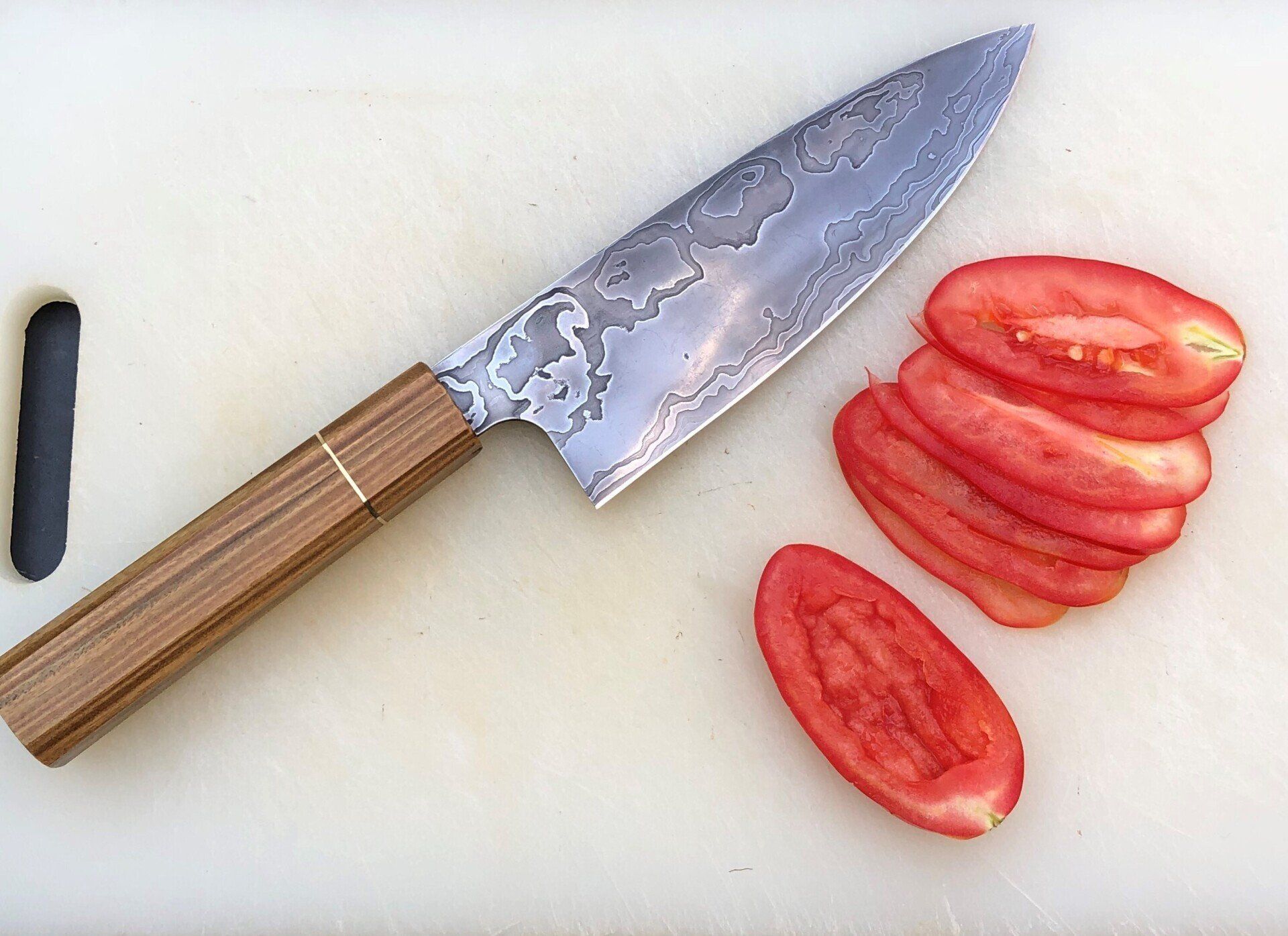 All my knives are handmade. Some I forge to shape from scrap spring steel from vehicles’ suspension springs, EN45, 1095 and 20N15, as well as recycled steel from chainsaw chains, motorcycle chains, cables and old handsaws to forge Damascus (pattern welded steel). For my full tang knives I use proprietary steel like O1 and O7 to build knives using the stock removal method. I do all my knife heat treatment in the differential heat treatment style and I check the RC hardness of every blade that I make using a special set of hardness test files that give a good degree of accuracy. Apart from that, now and then I take a blade and abuse it shamelessly as quality control. Not all my knives have the same RC and it depends on what the knife is intended for. If you need a particular RC rate for your knife please contact me.