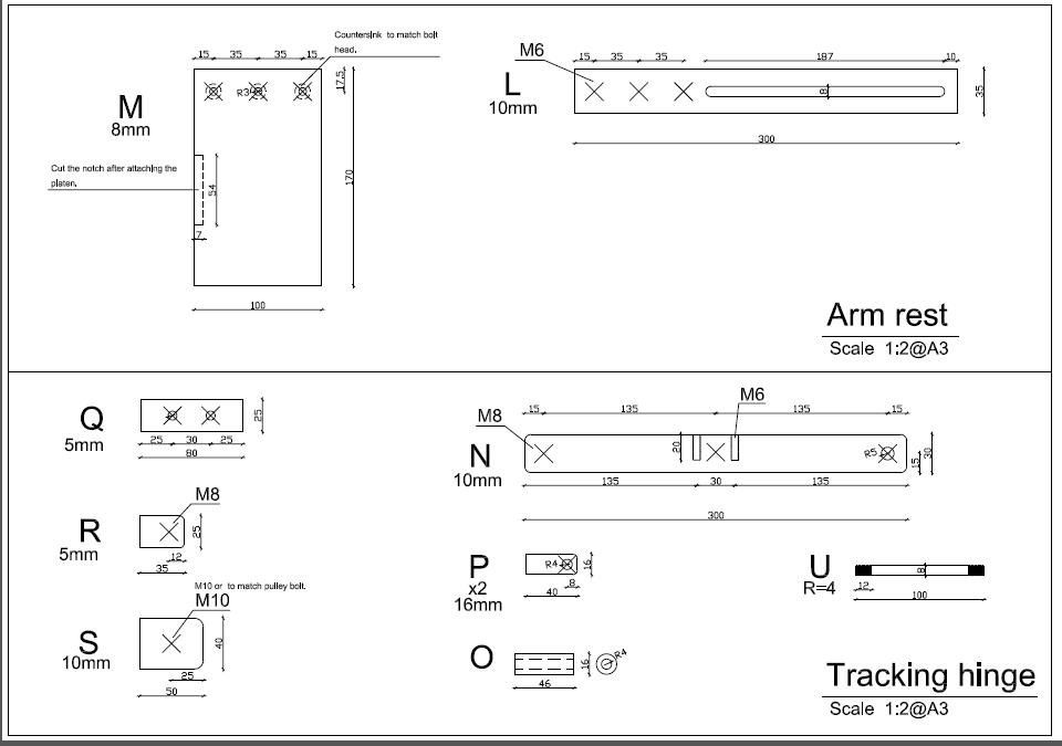 For the tracking hinge arm: 1x M10 Hexagon Head Setscrews 60mm + 4x Washers, + 1x Hex Nyloc Nut.