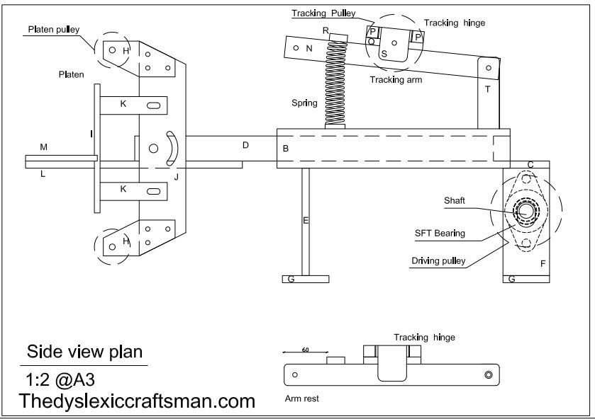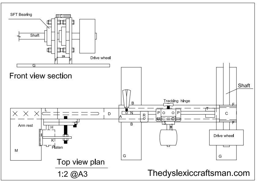 To save money I add to use two pieces of steel for the tool arm(Parts D), but I recommend to use one piece. It is very important for the arm tool to be dead straight.