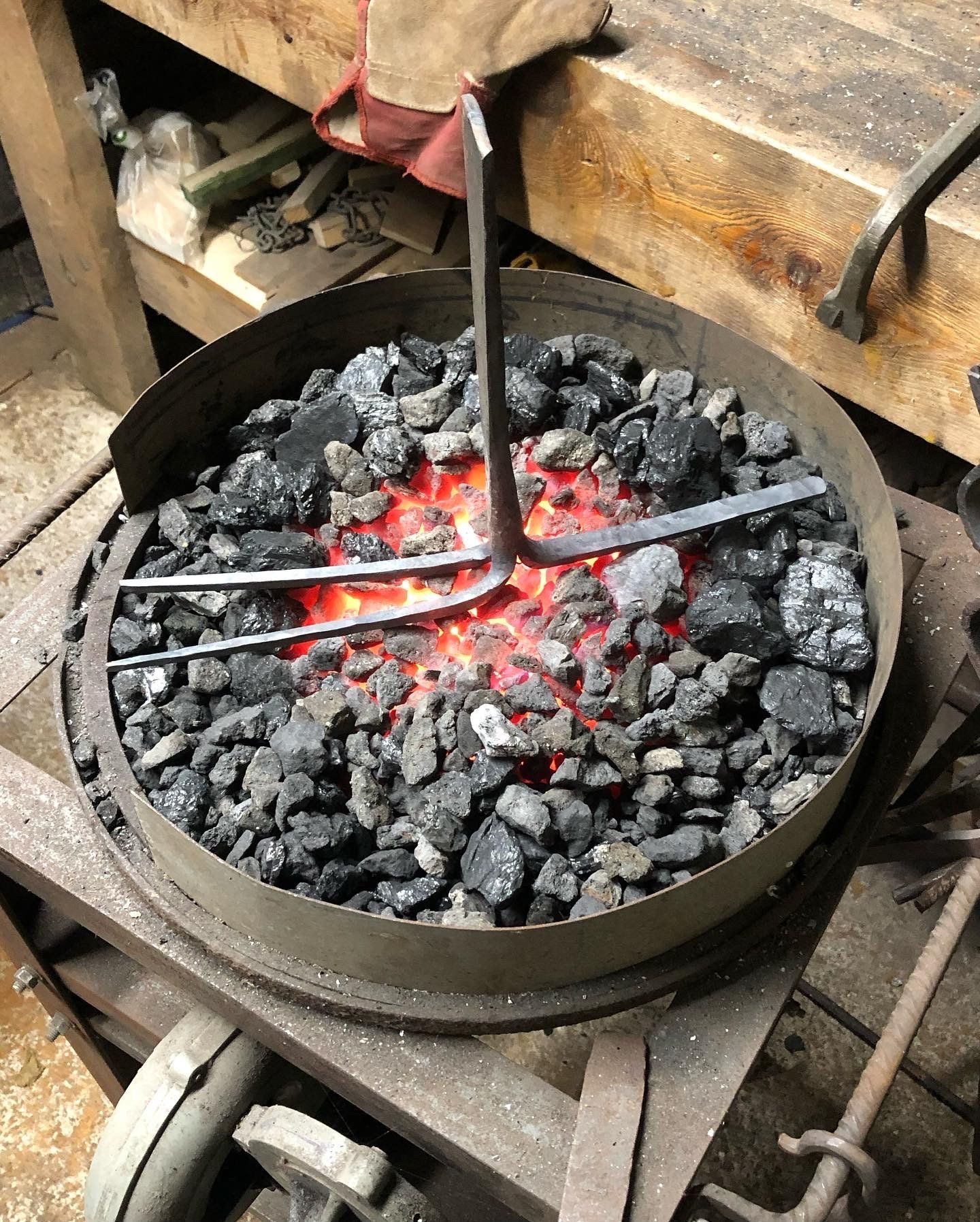 I offer half a day* workshop to forge fire poker, marshmallow fork or a spoon. Other objects can be practiced, but I need to know well in advance and if it is not overly complicated. We will us either gas forge or more traditional charcoal forge.